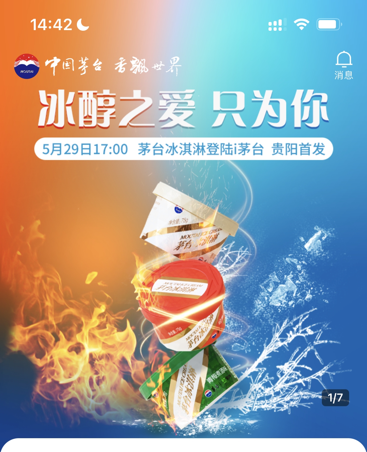 5月29日消息,今日17:00,由茅台与蒙牛联名出品,蒙牛马鞍山工厂生产的三款茅台冰淇淋将于贵阳首先上市,同时上线i茅台。从i茅台App获悉,目前茅台冰淇淋宣传界面已正式上线,号称“冰醇之爱,只为你”。