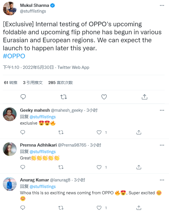 此外如果 OPPO 对内部测试结果暂不感到满意,后续也不排除进一步推迟新品的发布与上市。(传说中的 Google Pixel Fold 似乎也遇到了一些麻烦)