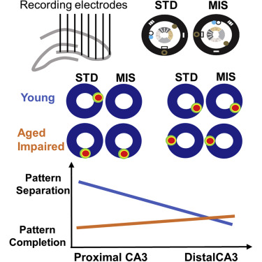 在实验中,科学家们将记忆未受影响的年轻实验鼠跟记忆未受影响的老年实验鼠及记忆受影响的老年实验鼠进行了比较。虽然记忆未受损害的老年实验鼠和年轻实验鼠一样完成了水迷宫任务,但它们海马的CA3区域的神经元已经开始倾向于模式的完成,而牺牲了模式的分离。由于这一生理发现并没有在它们的行为中显示出来,研究人员得出结论,有什么东西在让实验鼠补偿这一缺陷。