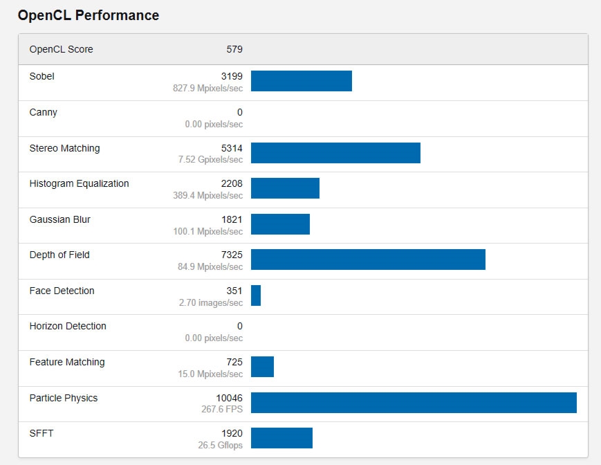 GeekBench 5 OpenCL跑分仅为579,这基本相当于AMD 2011年的集成显卡Radeon HD 6480G/6410D,或者移动端的ARM Mali-G52(2018年)、Mali-T860(2016年)。