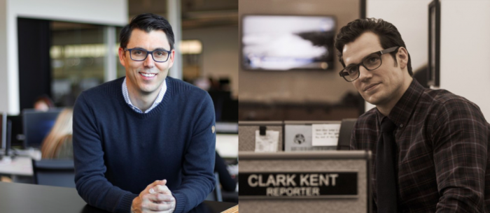 RJ.斯卡林奇(左)、 亨利·卡维尔扮演的超人(右)