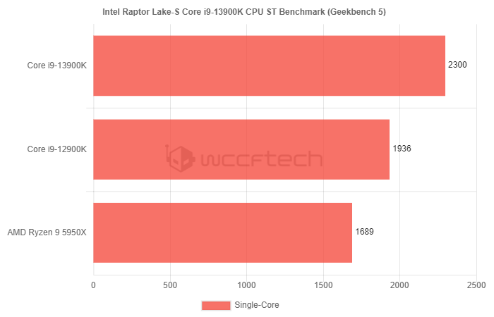 @OneRaichu 在爆料中援引了 Geekbench 5 的基准测试成绩,可知即将推出的 Raptor Lake 旗舰桌面处理器能够飙过 2300 分。