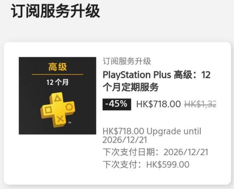 根据贴吧网友反馈表示,PS Plus会员服务升级价格策略悄然变化,基础会员剩余时长仍有数年的用户在升级时价格现已获封顶,分别是518港币和718港币。