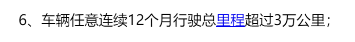 比如你于2022年5月1日购车,那到2023年5月初这段时间,别超过3万公里就行,以此类推。