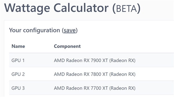 相关新闻,海韵在其功耗计算器中赫然列出了AMD RX 7000系列,其中RX 7900 XT、RX 7800 XT所需电源功率最低750W,RX 7700 XT则对应650W电源。