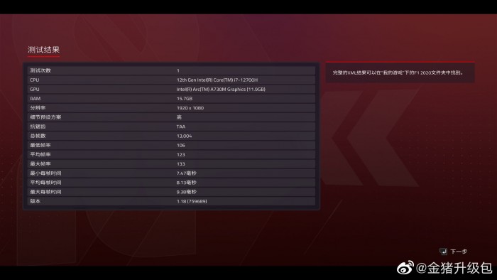 今天,网友再次晒出了Arc A730M实战游戏的成绩,跑了三款,各两种分辨率。所用笔记本是机械师曙光16。