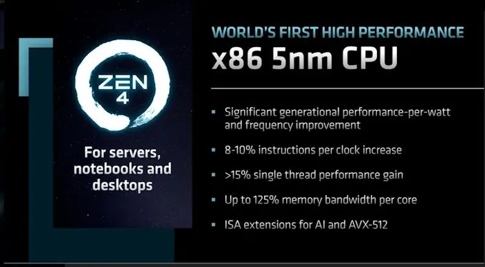 在 2022 Financial Analyst Day 上,AMD 公司分享了 Zen 4 CPU 架构的简短、深入的更新。这些信息是随更大的 Zen 架构路线图同步放出的,AMD 已经确定 Zen 5 将会在 2024 年上线。