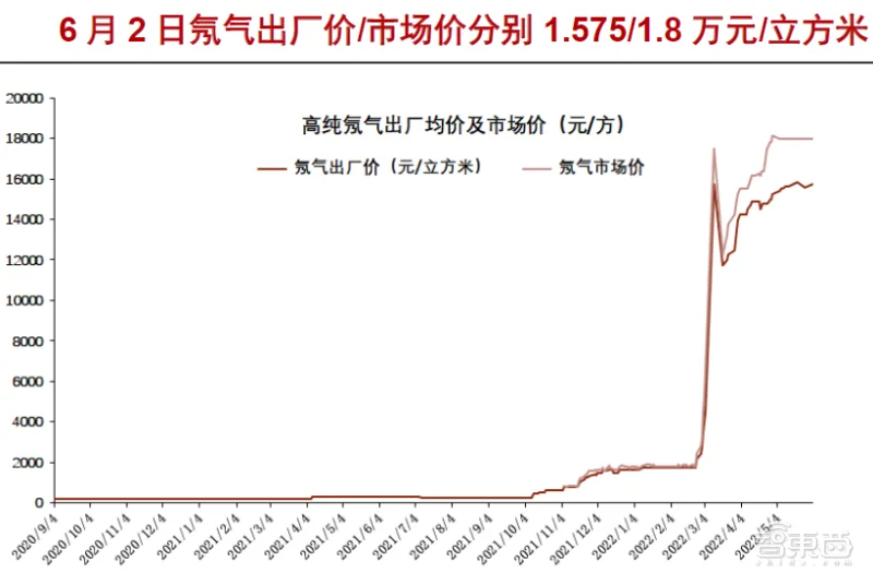 根据浙商证券研报,2022年6月2日,中国氪气市场价为5.45万元/立方,氙气市场价为54.3万元/立方,氖气市场价为1.8万元/立方,氪气、氙气相比战争前均有2-3倍增长,氖气战前价格更是仅有1500/立方左右。