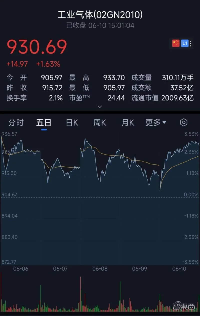 截至6月10日A股收盘,华特气体股价为71.01元/股,涨幅5.39%,总市值85.21亿元。