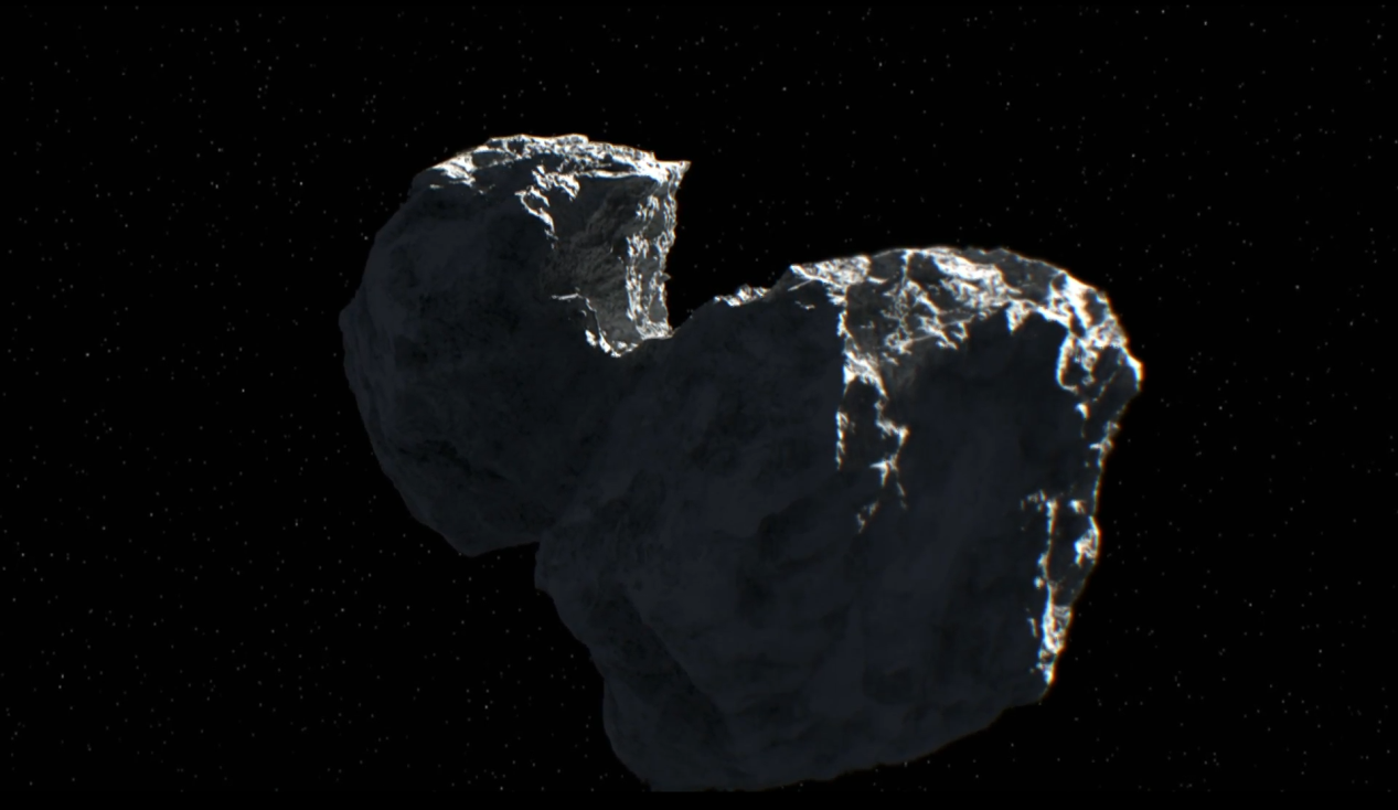 这告诉科学家们彗星不是均匀的,材料不完全一样。“菲莱”的仪器显示彗星67P不仅仅是两个叶瓣融合在一起,而是由不同的块体在引力的作用下聚集而成的。