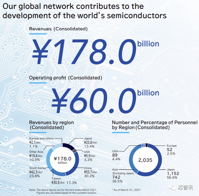 根据Kokusai Electric官网公布的资料显示,其2021财年营收为1780亿日元,约合16.38亿美元。其中来自中国大陆的营收占比最高,达到了30.2%。