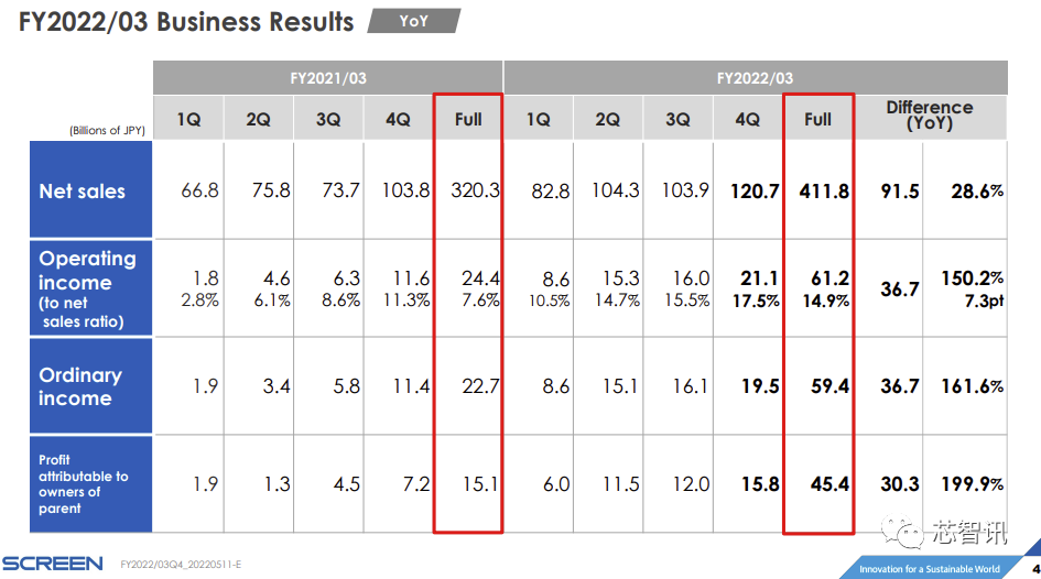 Screen表示,一季度SPE订单额创新高。Screen社长广江敏朗在线上财报说明会上也表示,“来自晶圆代工厂等企业的订单强劲,此种情况预估将持续至2023年3月”。