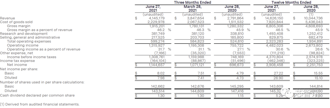 泛林集团的2021财年统计的是2020年6月28日至2021年6月27日的财务数据。根据其公布的各个季度的数据来看,截至2021年12月26日的2021自然年度的营收约为165.24亿美元。