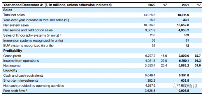 ASML的公布的截止2021年12月31日的2021年全年营收为186.11亿欧元,同比增长35%。按照2021年度欧元兑美元中间汇率1:1.17换算,约为217.75亿美元。