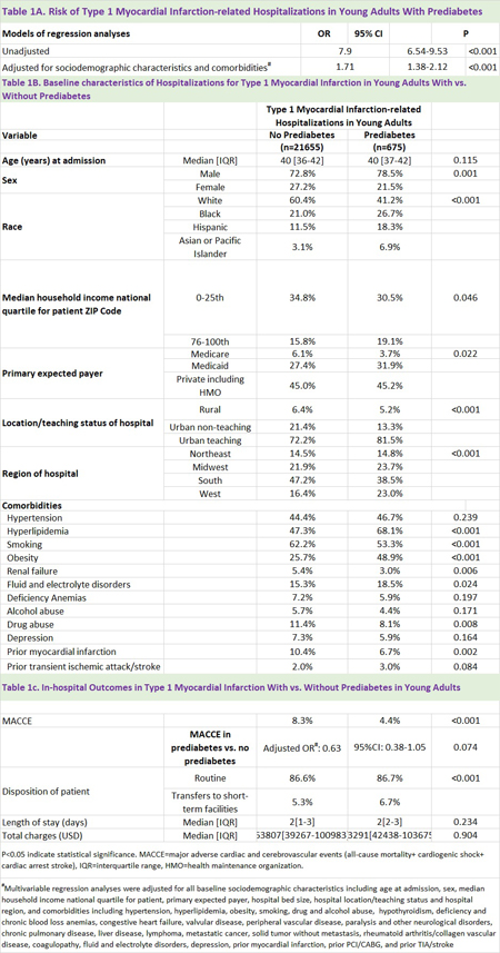 与没有糖尿病前兆的心脏病患者相比,因心脏病发作而住院的患有糖尿病前兆的成年人更有可能拥有较高的家庭收入,在城市教学医院住院或在美国中西部和西部地区住院。