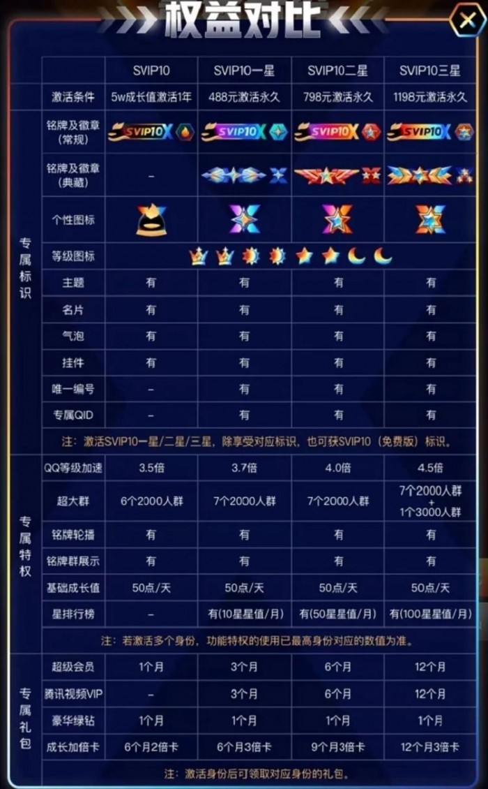 SVIP10体系共有4款身份:SVIP10 /一星/二星/三星