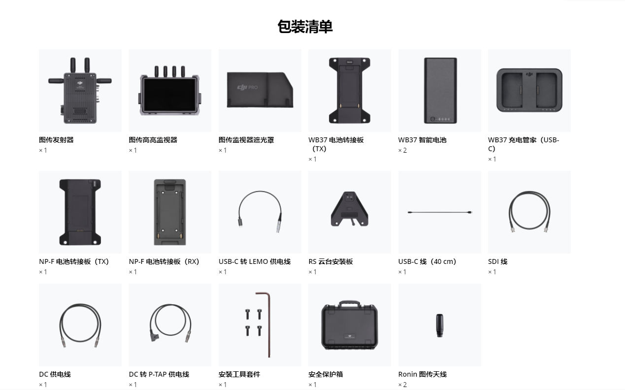 传输方面,DJI Transmission提供控制、广播两种模式,在控制模式下,最多可同时连接两个DJI图传高亮监视器,支持同时监看画面并协同控制Ronin 2、RS 3 Pro的云台及相机焦点,兼容支持输出SDI、HDMI信号的设备。