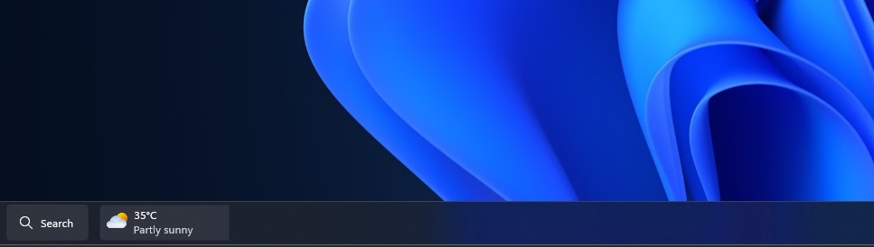 同样地,小部件板在任务栏内显示温度和天气。这项功能被称为"任务栏的动态内容",微软现在正计划在任务栏上显示更多的动态更新。目前,任务栏的动态更新只限于天气,但这可能很快会改变。