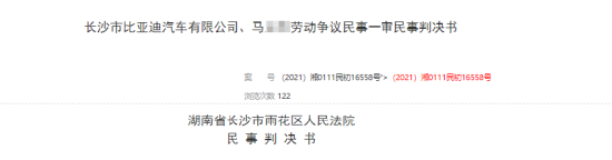 针对该仲裁结果,长沙比亚迪不服,并将该员工起诉到了法院。