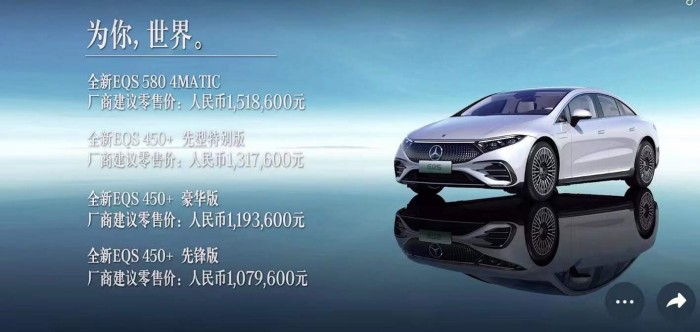 电动化来临,老牌车企被后来居上的新造车势力给打了个措手不及,虽然不少回过味来之后,开始着手推出自家的纯电动车,但就销量而言,差得不是一星半点。去年底,奔驰旗舰纯电轿车EQS在国内正式上市,其共推出了4款车型,售价区间为107.96-151.86万。