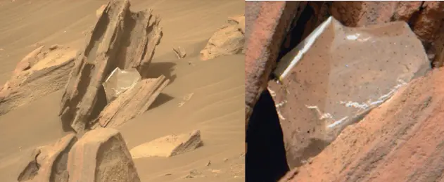 在前往火星培根地带的旅程中,美国宇航局的科学家们还注意到了一些似乎不是火星原生的东西。仔细观察后,美国宇航局确定这不是一块岩石,而是一块来自地球的箔片,在毅力号登陆火星的上升阶段使用。