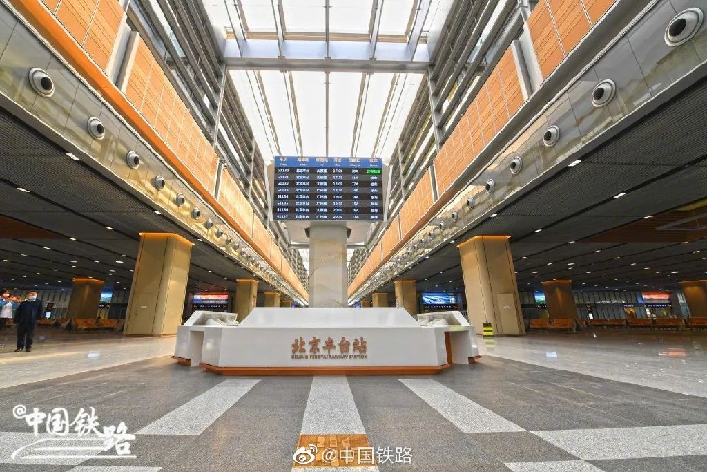全新的丰台站建筑面积约40万平方米,每小时最高可容纳14000人同时候车,设有32条到达出发线,32个客运站台面。