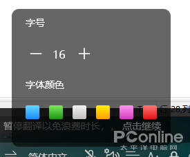 用户还可以调整字幕的字号与字体颜色,此外在关闭字幕助手窗口时会提示用户是否保留本次识别与翻译的文本文件与声音文件。