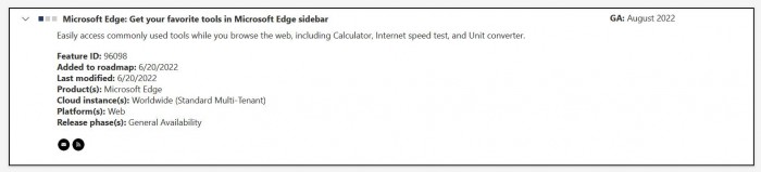 援引 Dr. Windows 报道,根据新的 Microsoft 365 路线图,Edge 即将引入 3 个内置工具:计算器、单位转换器和网速测试。微软表示,8 月份的 Edge 更新将在侧边栏中增加“你最喜欢的工具”。