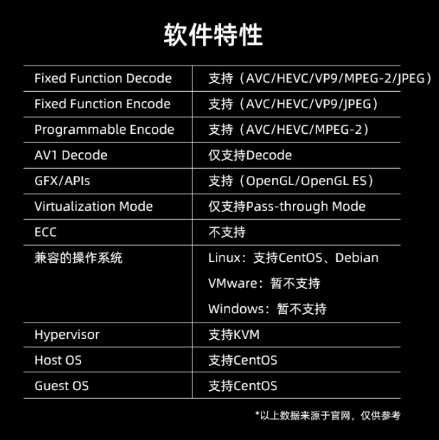 操作系统支持CentOS、Debian,不兼容Windows、VMWare,图形接口支持OpenGL、OpenGL ES。
