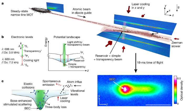 那么,研究人员是如何做到这一点并创造出永远运行的激光的呢?首先,他们形成了BEC。接下来,他们为BEC创造了一个大型的“水库”,以便从其中提取新的原子。研究人员在他们的论文中指出,这个“水库”不断装载着锶原子。BEC本身位于“水库”内,研究人员不断使用激光来冷却“水库”。