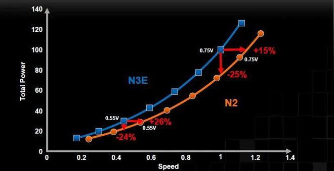 • 与 N3E 相比,N2 将提供约 10-15% 的性能提升(@iso-power,0.75V)或约 25-30% 的工号降低(@iso-perf,0.75V);另请注意上图中指定的工作范围低至 0.55V
