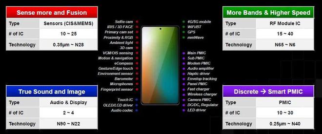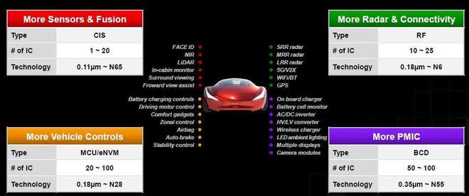 尽管智能手机开发的重点往往集中在主应用处理器上,但下表突出了对专业技术产品及其相关功能的极其多样化的要求。在汽车领域,向“区域控制”架构的过渡将需要一套新的汽车 IC。