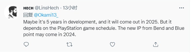 开发要5年,发售要2025年,但一切要看索尼的安排。Bend和蓝点工作室的新IP可能会被安排到2024年