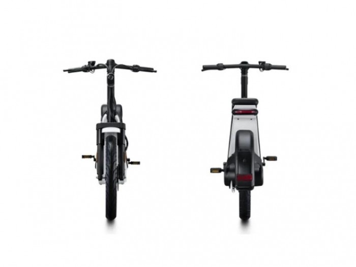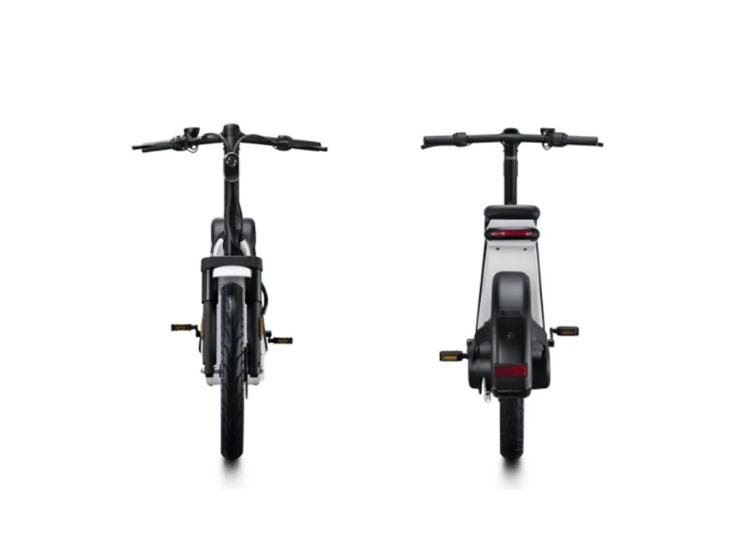 外观来看,这款电动自行车十分简约,拥有纯黑和黑白两种版本,整体样式参考了踏板摩托的设计理念,其中座位和握把均采用了符合人体工程学的设计方案。
