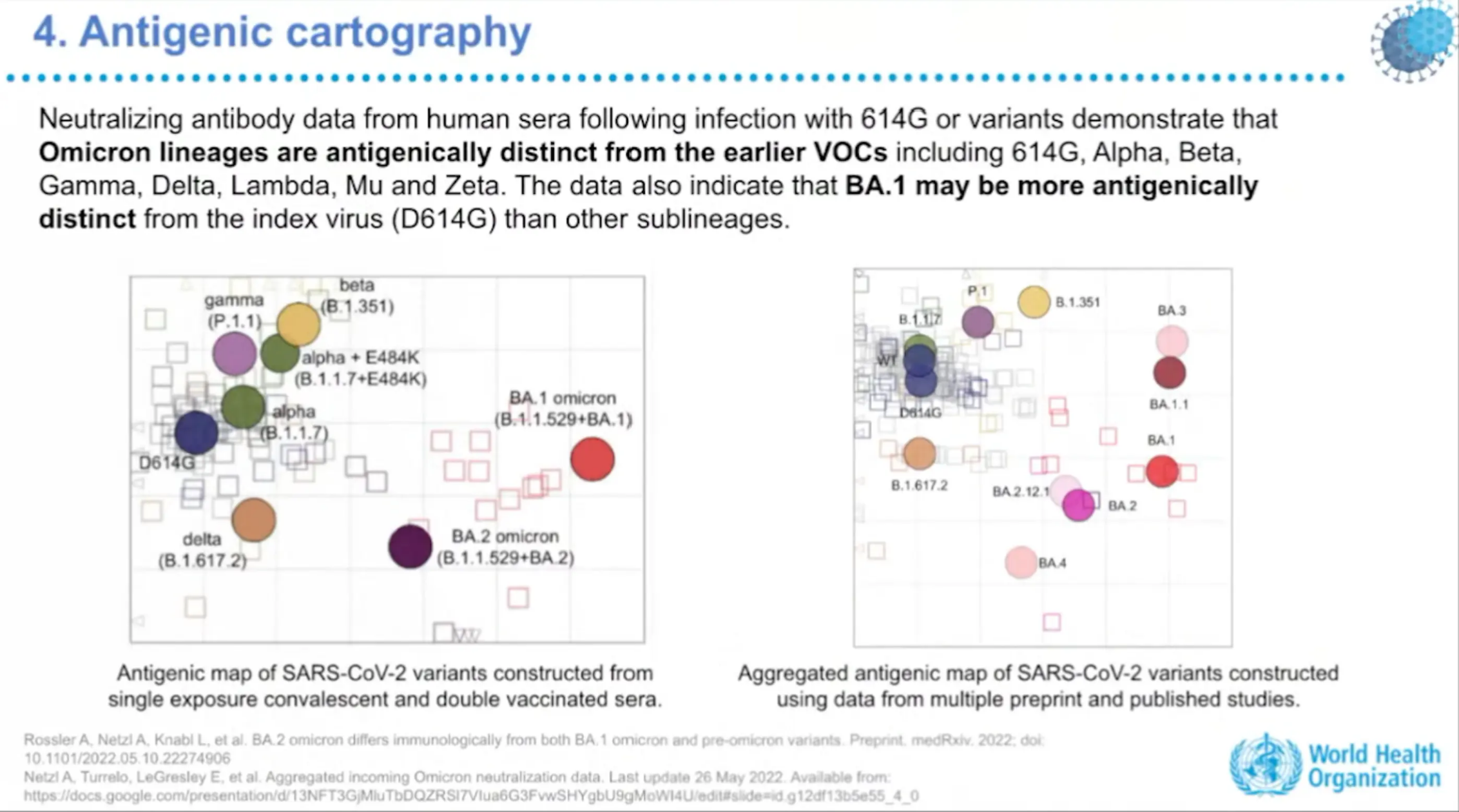 世卫组织的数据显示,目前流通的抗原性最强的SARS-CoV-2变体是BA.1。抗原图谱即根据SARS-CoV-2变体在抗原上的不同程度绘制的图谱表明,BA.1比奥密克戎的其他形式更独特,因此它可能是扩大免疫的最佳目标。