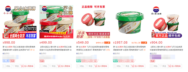 电商平台显示,官方售价50多元-60多元/杯的茅台冰淇淋,目前与已经被炒到了120多元-250多元/杯。