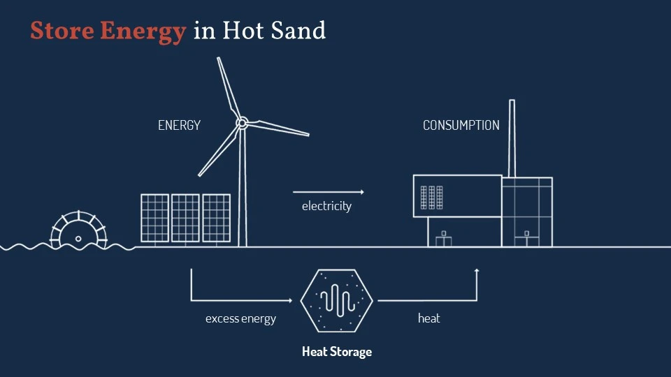 芬兰初创公司Polar Night Energy和芬兰当地的公用事业公司Vatajankoski共同建造了世界上第一个可由太阳能和风能驱动的商用沙基高温储热系统。