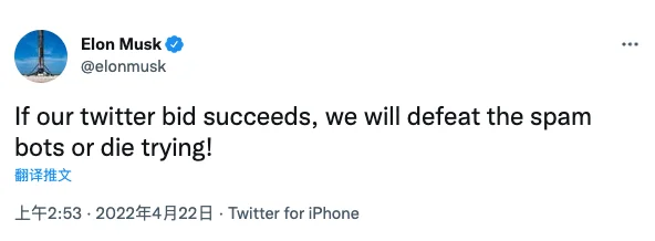 在今年4月25日,推特董事会通过马斯克的收购方案,公司将作价440亿美元出售给马斯克,从而成为一家私人公司。推特在三天后公布了今年第一季度的财报,公布推特一季度的mDAU(可货币化的日活跃用户)达到2.209亿,同比增长15.9%,其中经公司内部审查后,预计虚假账户占整体mDAU的比例不足5%。