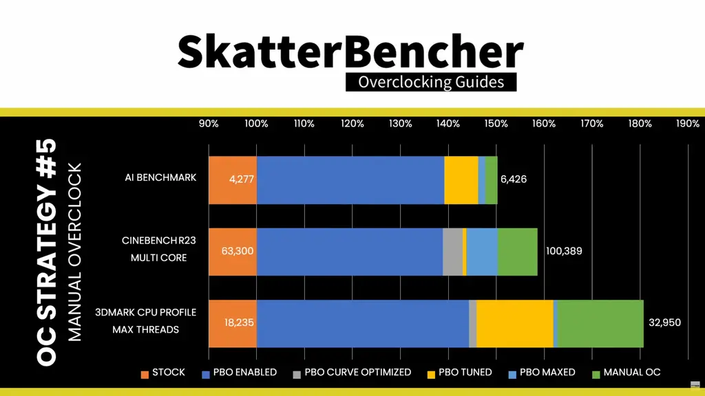 SkatterBencher 以擅长超频享誉业内。 AMD Ryzen Threadripper 5990X CPU 的最佳结果是通过手动超频实现的,这并不令人意外。唯一的缺点是最大单线程提升频率有限,在 Ryzen Threadripper 5990X 芯片上的 8 个 CCD 中,CCD4 提供了最好的调谐结果,在 1.45V 下达到了 4.82 GHz。