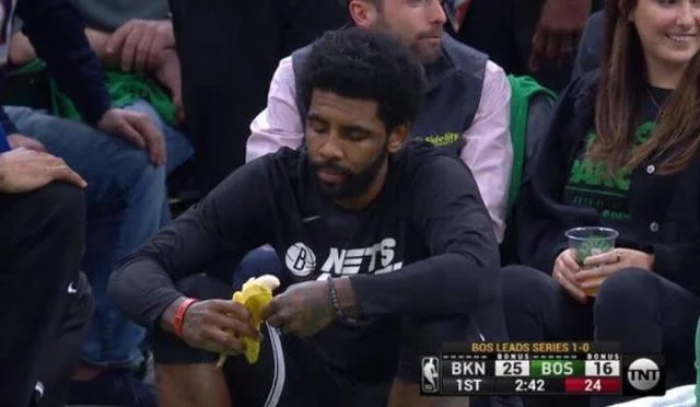 终于,季后赛前夕,纽约市政府修改了规定,欧文可以上场打球了,但你可能有所不知,欧文早在 19 年又皈依了穆斯林,又赶上斋月了,只能等太阳落山了垫吧两口香蕉,欧文变成了饿文,打球没劲儿……