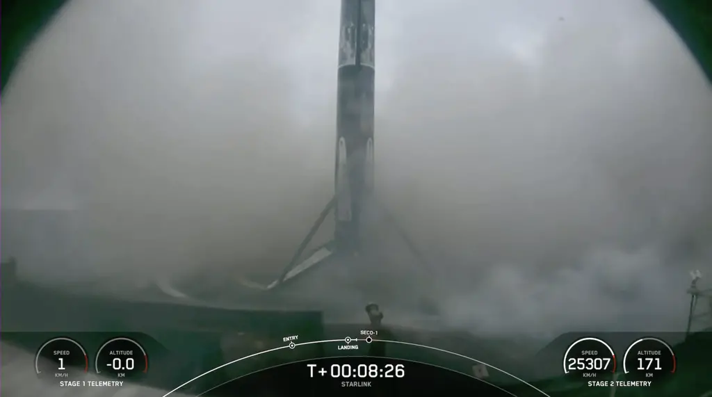 大约 8.5 分钟后,火箭一级就顺利返回了太平洋上的“我依然爱你号”(Of Course I Still Love You)驳船。而后官方Twitter宣布,火箭上级在升空 63 分钟后,如约在轨道上部署了 46 颗 Starlink 卫星。