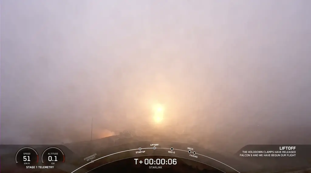 这次发射是在东部时间昨天深夜进行的,这是 SpaceX 在浓雾和云层中发射火箭的罕见场合。与该公司在佛罗里达州的美国国家航空航天局 (NASA) 设施的发射相比,通常天气晴朗,天空晴朗,而从加利福尼亚州范登堡的发射有时会伴随着浓雾。