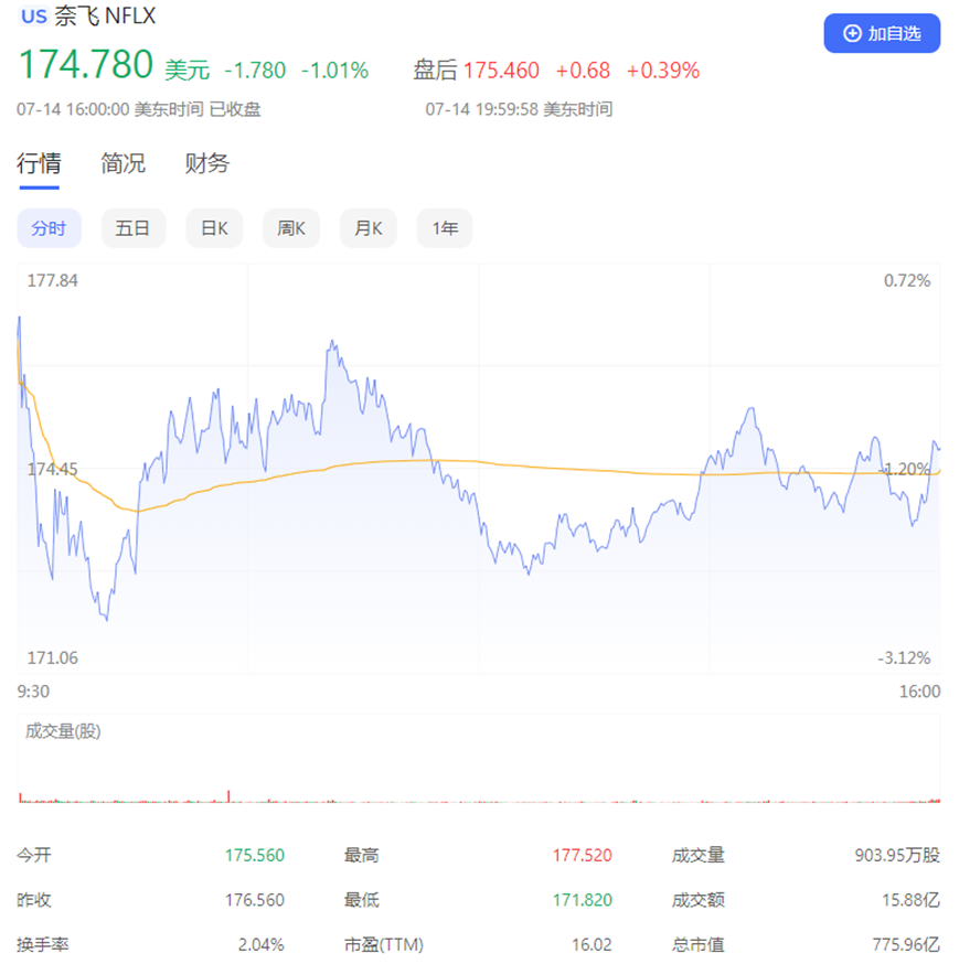 截至隔夜美股收盘,奈飞的市值约为800亿美元。