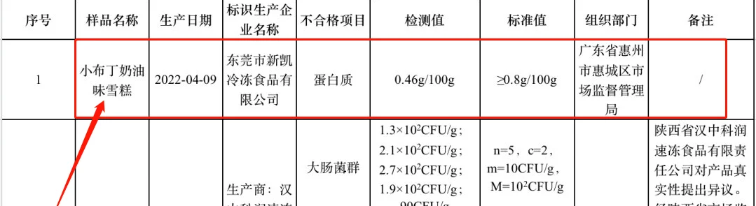 被检测出的不合格雪糕品牌 图源中国新闻网微博截图