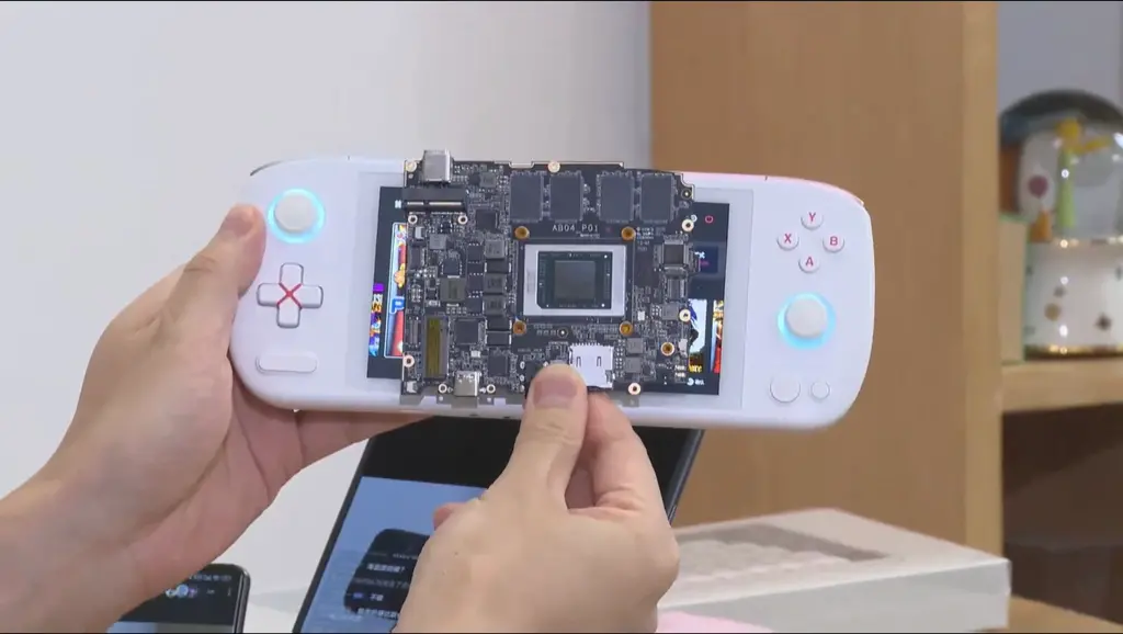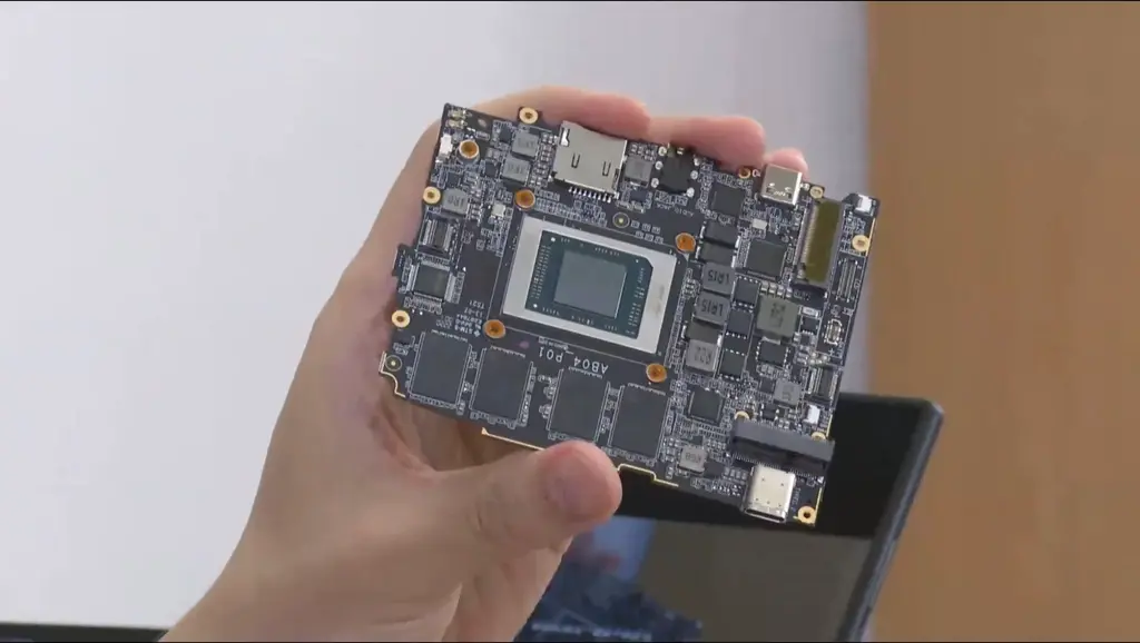 在演示环节,他展示了 AYANEO Air Pro,并解释道该系统使用了 AMD 的 Ryzen 7 5825U APU,提供最高时钟频率为 4.5GHz 的 8 核心 16 线程性能。该 APU 基于 7nm 生产工艺,集成了 8 个 CU/512 个最高频率 2000 MHz 核心的 Vega 图像处理器。