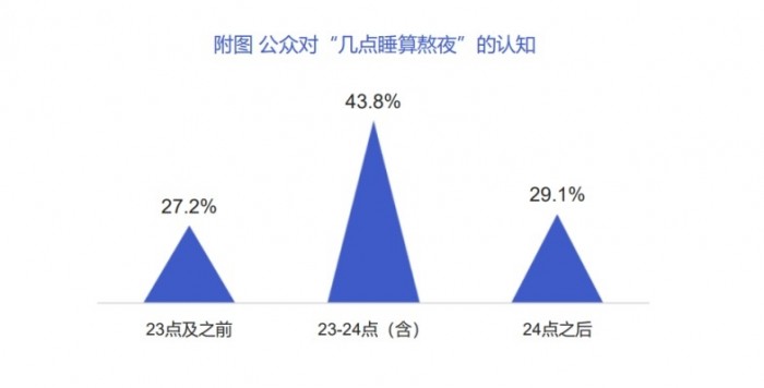 你会熬夜吗?每天都几点睡?据@健康时报 消息,7月14日,全国卫生产业企业管理协会睡眠产业分会、深圳市倍轻松科技股份有限公司联合北京零点有数数据科技股份有限公司共同发布了《2022年中国作息报告》。报告对25~45周岁的普通人群进行调查,覆盖全国10个主要城市,采用定量问卷调查的方式完成,总共回收有效样本1100个。