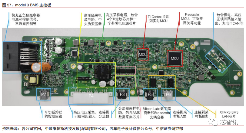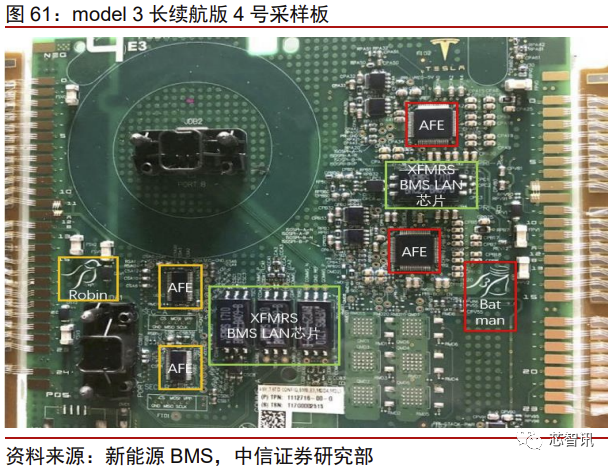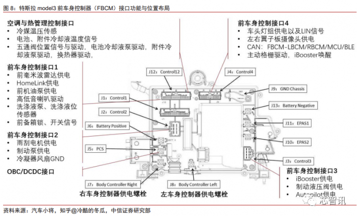 中信证券则通过拆解特斯拉Model 3标准续航版,对其域控制器、线束和连接器、电池、电机电控、热管理、车身等多个方面进行了深入细致地分析。