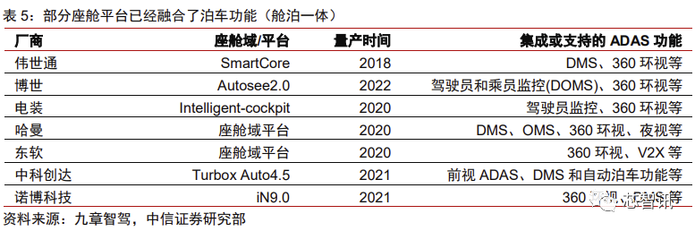 座舱域控制器的第二个发展方向则是可能与自动驾驶控制器的融合。首先,当前座舱 控制器的算力普遍出现了过剩,剩余的算力完全可以用于满足一些驾驶类的应用,例如自 动泊车辅助等。其次,一些自动驾驶功能尤其是泊车相关功能需要较多人机交互,这正是 座舱控制器的强项。而且,座舱控制器与自动驾驶控制器的融合还能够带来一定的资源复 用和成本节约,停车期间可以将主要算力用于进行游戏娱乐,行驶期间则将算力用于保障自动驾驶功能,而且这种资源节约能够让汽车少一个域控制器,按照 MCU3 的价格,或许 能够为每台车节约上百美元的成本。目前已经出现了相当多二者融合的迹象,比如博世、 电装等主流供应商纷纷在座舱域控制器中集成 ADAS 功能,未来这一趋势有望普及。