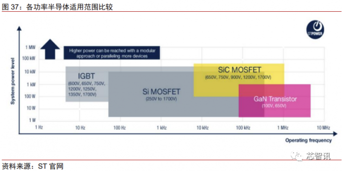 与 IGBT 类似,SiC 同样具有高电压额定值、高电流额定值以及低导通和开关损耗等 特点,因此非常适合大功率应用。SiC 的工作频率可达 100kHz 以上,耐压可达 20kV,这 些性能都优于传统的硅器件。其于上世纪 70 年代开始研发,2010 年 SiC MOSFET 开始 商用,但目前并未大规模推广。
