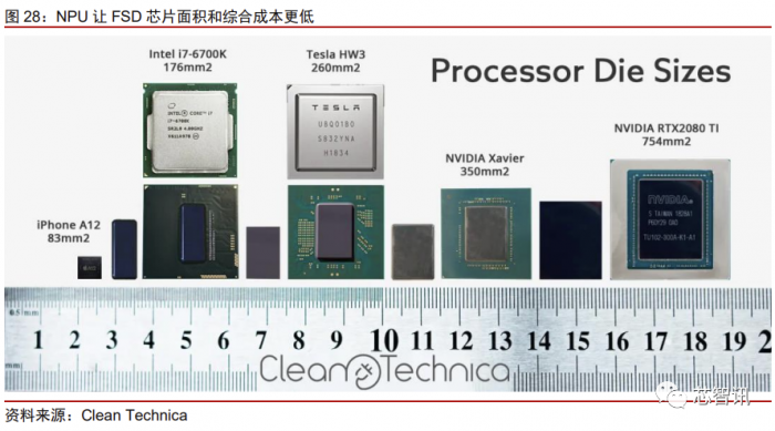 2、驾驶域:FSD 芯片和算法构成主要壁垒,NPU 芯片效率更优